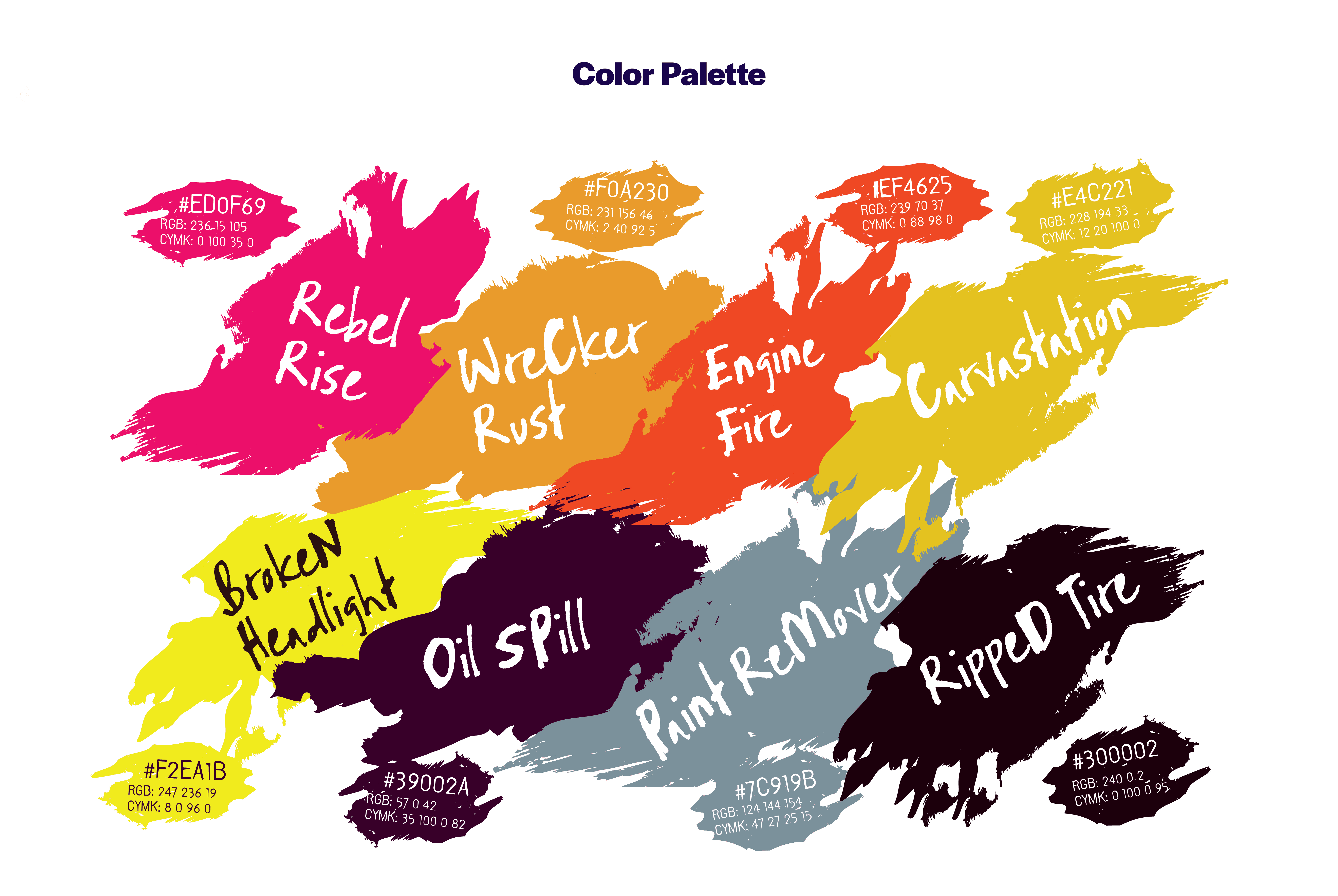 Wreckorama is the festival pinnacle of absolute destruction. As fellow destroyers go to Wreckorama, carnage strikes with custom-made RC machines that wreck in multiple arenas for competition or straight fun. This festival follows suit with collages and plastered images at the forefront, with renegade colors and grundge style layouts. With a rebellious attitude and renegade heart, Wreckorama aims to sell the spirit of destruction that is just part of human nature, while also building self-expression and fun with fellow communities.